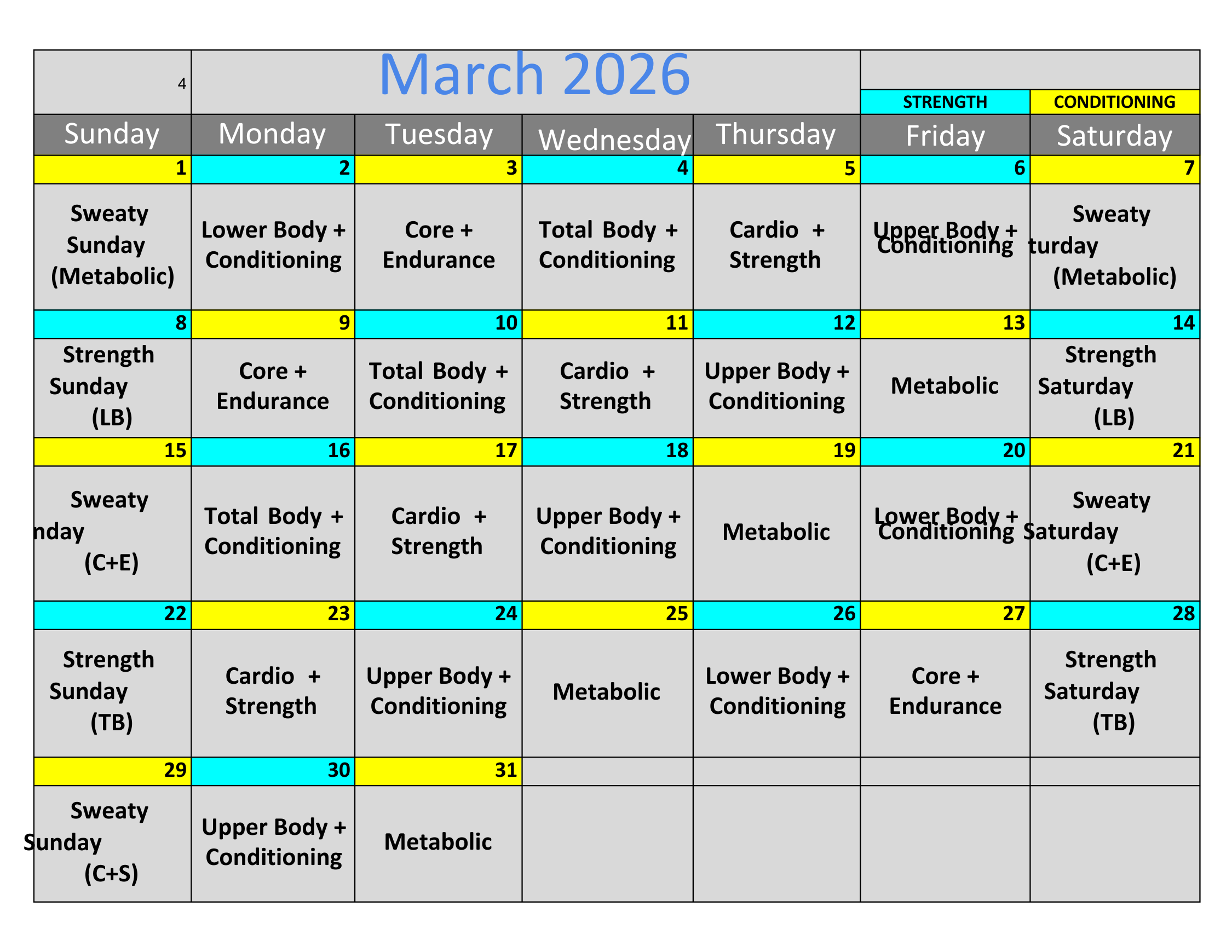 GROUP CLASS SCHEDULE